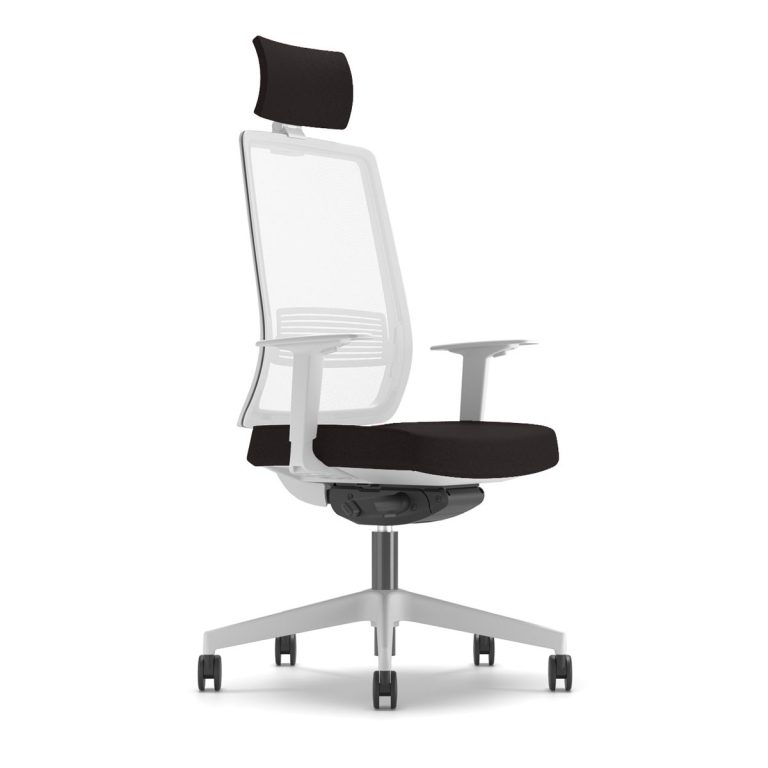 Ергономичен работен стол Lucio White HR, мрежа и дамаска, бяла PP база, рег. подлакътници, черен