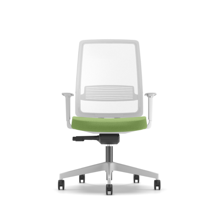Ергономичен работен стол Lucio White, мрежа и дамаска, бяла PP база, рег. подлакътници, зелен
