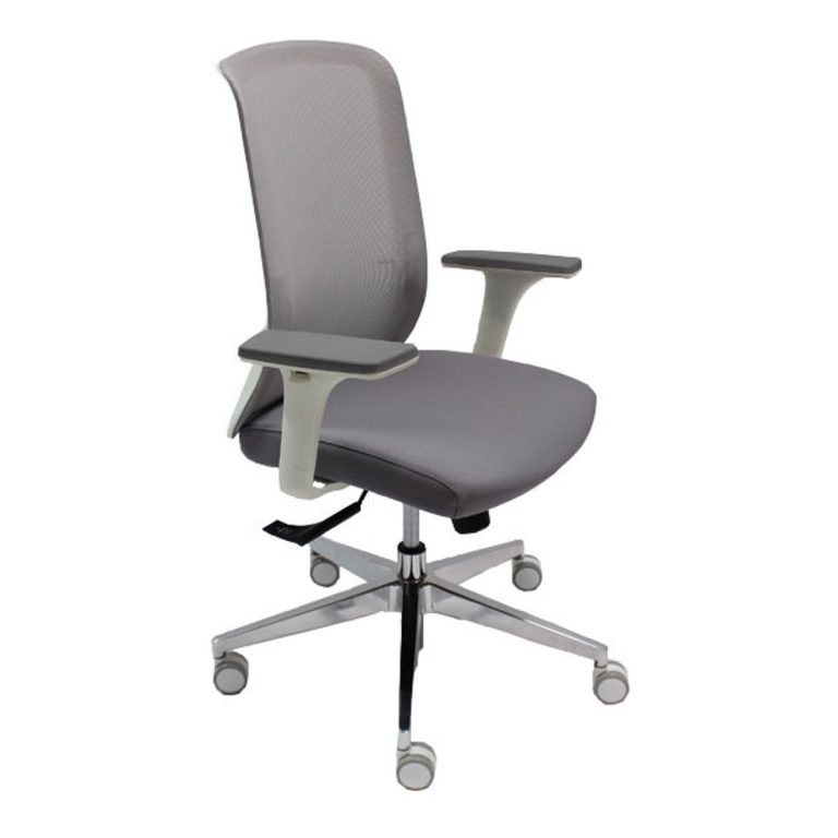Ергономичен работен стол Matador LB, мрежа и дамаска, база алуминий, 3D подлакътници, сив