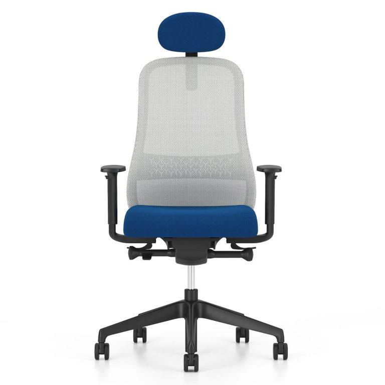 Ергономичен работен стол Souly Mesh HRUA, мрежа и дамаска, черна PP база, 2D подлакътници, син