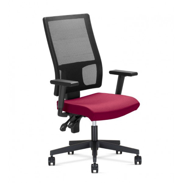 Ергономичен работен стол TakTik Lu Active 1, мрежа и дамаска, черна РР база, 2D подлакътници, червен