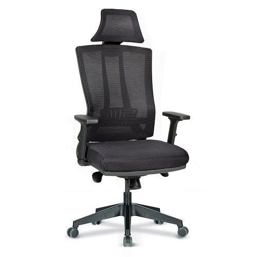 Ергономичен работен стол Varna, мрежа, опора за главата, черна РР база, рег. подлакътници, черен