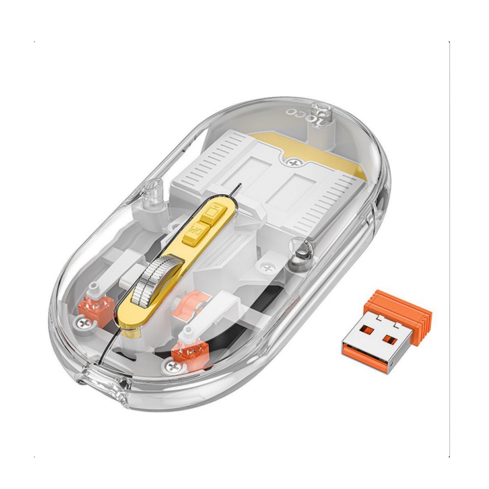 Ергономична безжична блутут мишка за PC и Mac - Hoco GM35 Magnetic Silent Transparent Wireless and Bluetooth Mouse (прозрачен-сив)