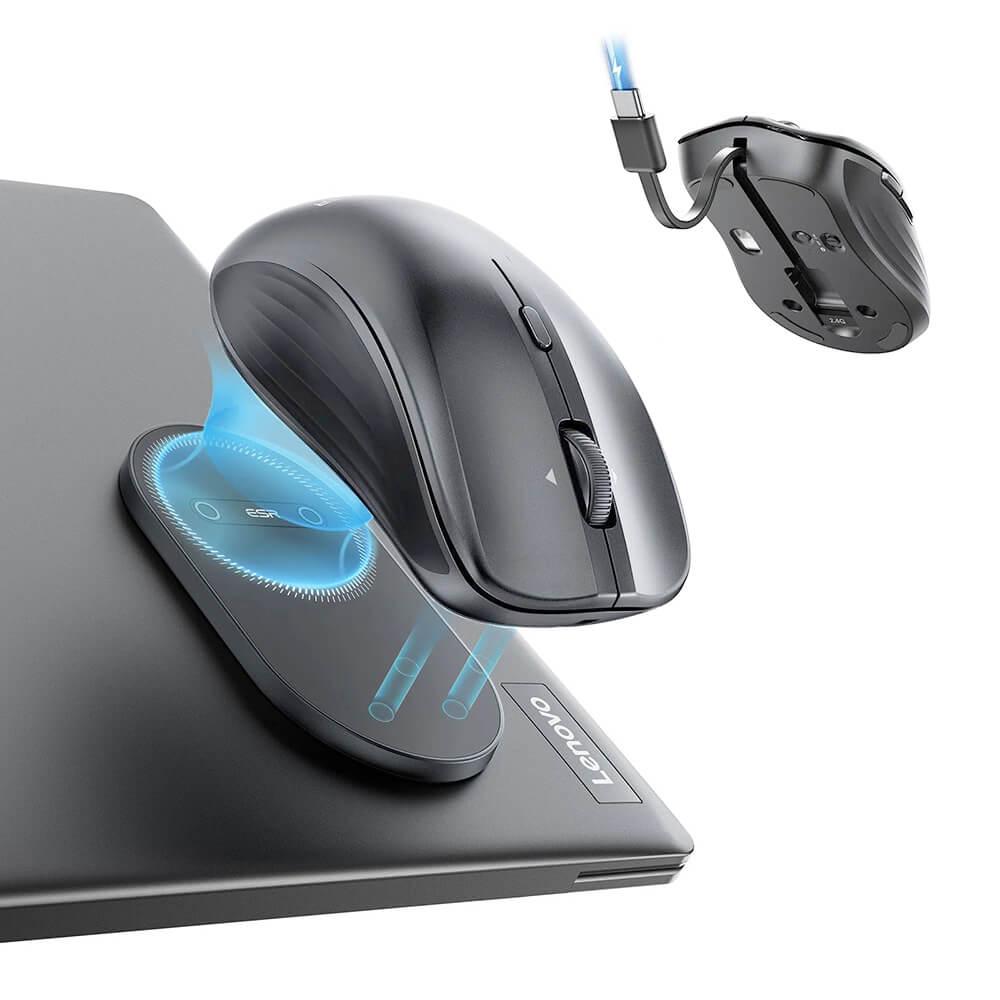 Ергономична безжична мишка с MagSafe повтавка (за Mac и PC) - ESR MagMouse MagMouse Snap-to-Carry Bluetooth Wireless Mouse (тъмносив)