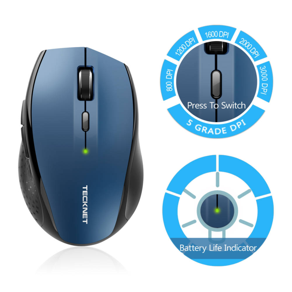 Ергономична безжична мишка (за Mac и PC) - TeckNet M006 2.4G Wireless Mouse (син)