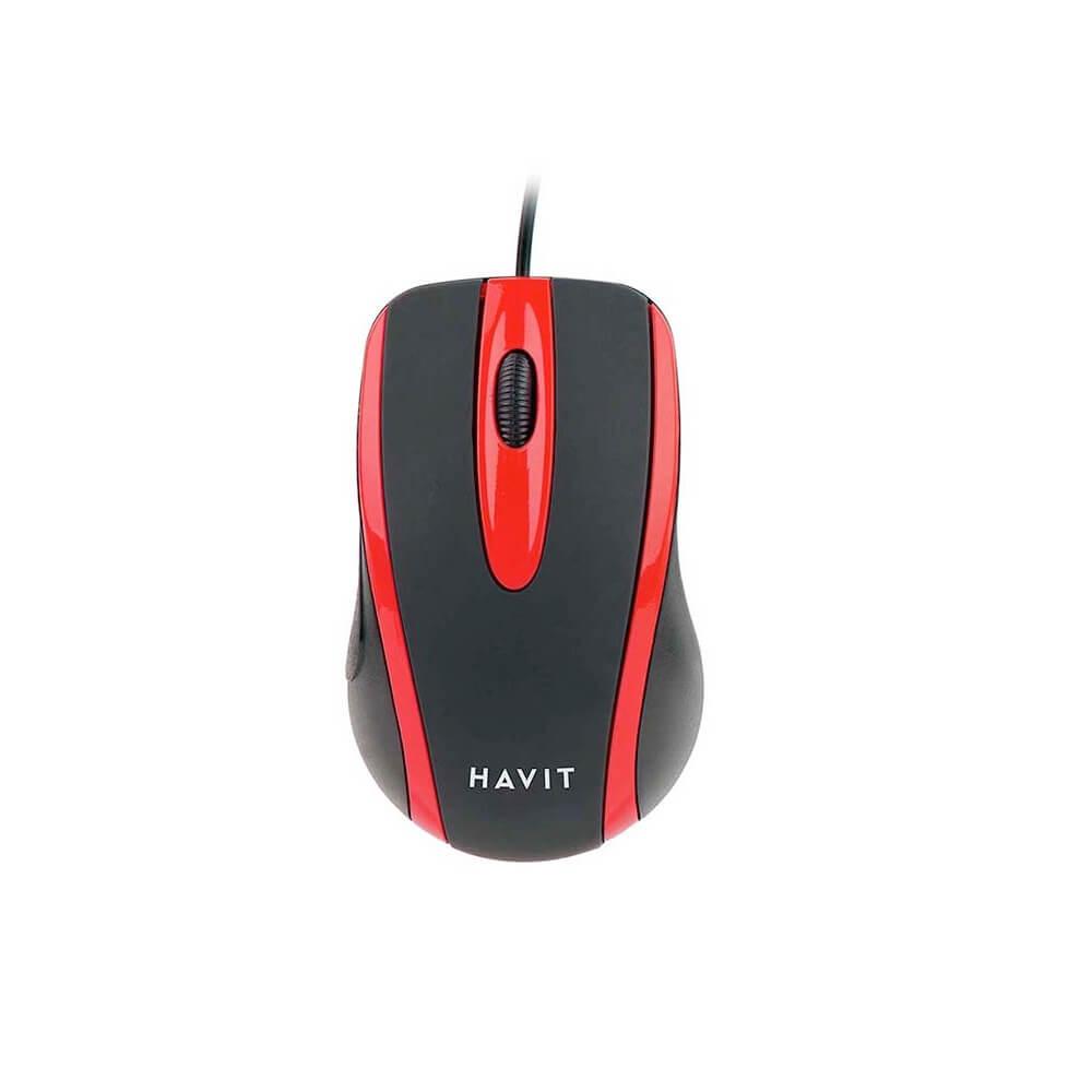 Ергономична жична мишка (за Mac и PC) - Havit MS753 Wired USB Mouse (черен-червен)