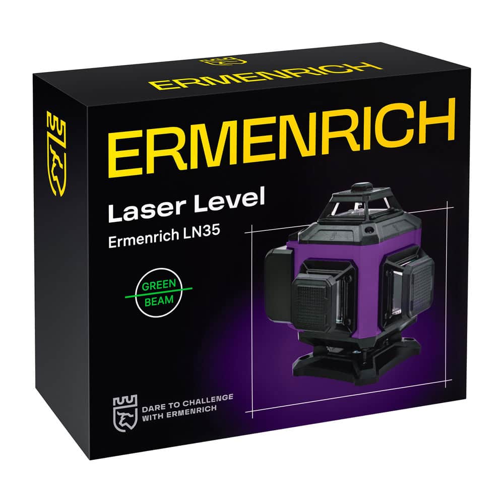 Няма задачи, с които лазерният нивелир Ermenrich PRO LN35 да не може да се справи. Този нивелир може да се използва в най-предизвикателните строителни сценарии. Той създава 16 линии: две равнини с хоризонтален обхват 360° и две равнини с вертикален обхват 360°. Получените маркировки удовлетворяват всички нужди на професионалния строител. Уредът помага при подравняване на подове, поставяне на плочки, монтиране на врати и прозорци, работа по тавани, маркиране на електрически ключове и контакти и др. Освен това нивелирът може да се използва с дистанционно управление за по-лесна работа.