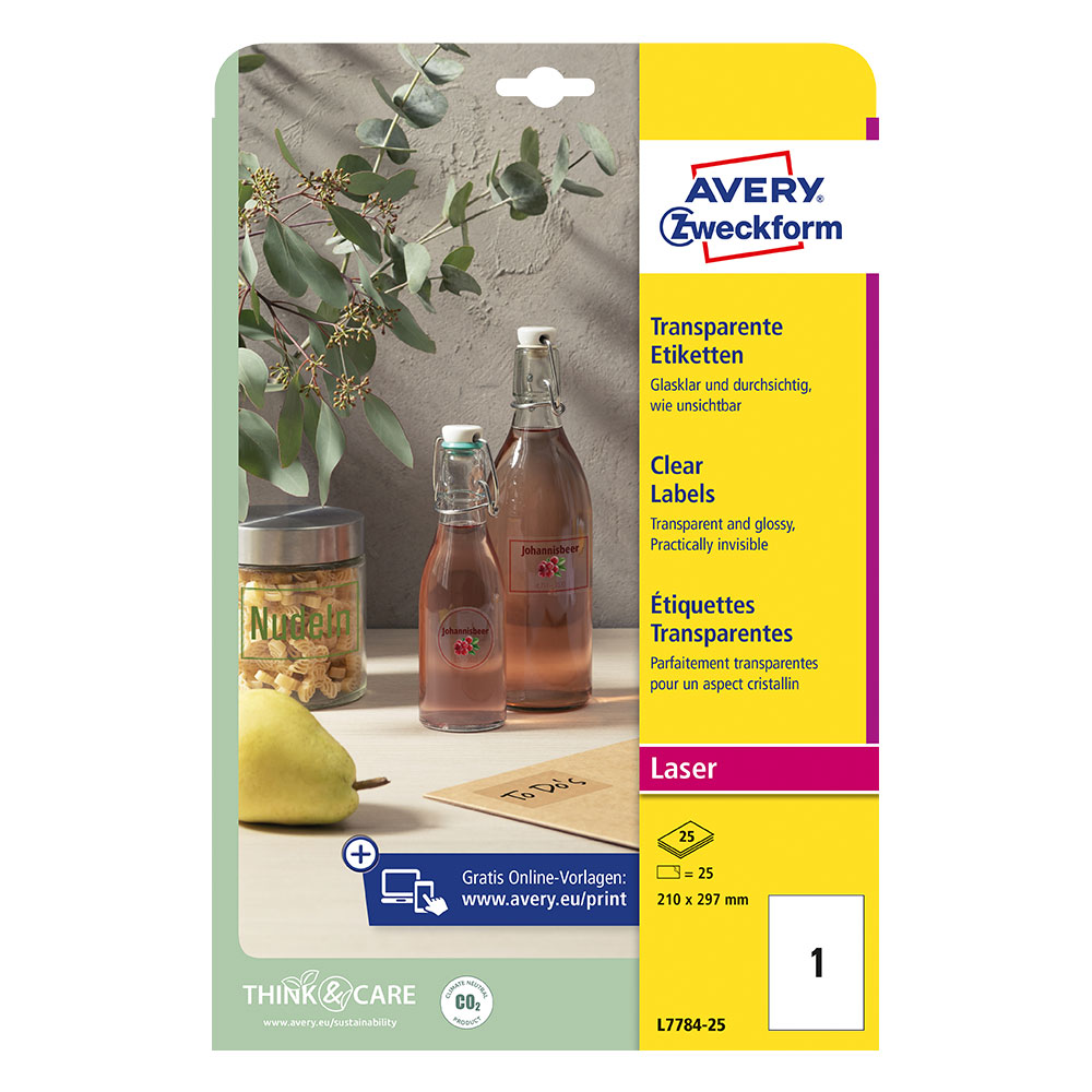 Преобразете вашите продукти с професионален завършек, който изглежда като директен печат върху повърхността. Кристално прозрачните етикети на Avery Zweckform са невидимата основа за вашите идеи.