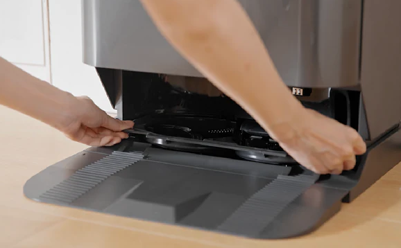 Self-Emptying, 75 Days Maintenance Free The 3 L large-capacity dust bag in the station delivers up to 75 days* of use before needing to replace the dust bag to keep your cleaning hands-free for longer. | Easily Remove the Tray for Quick Cleaning The base station tray is removable for easy cleaning and more thorough rinsing. |