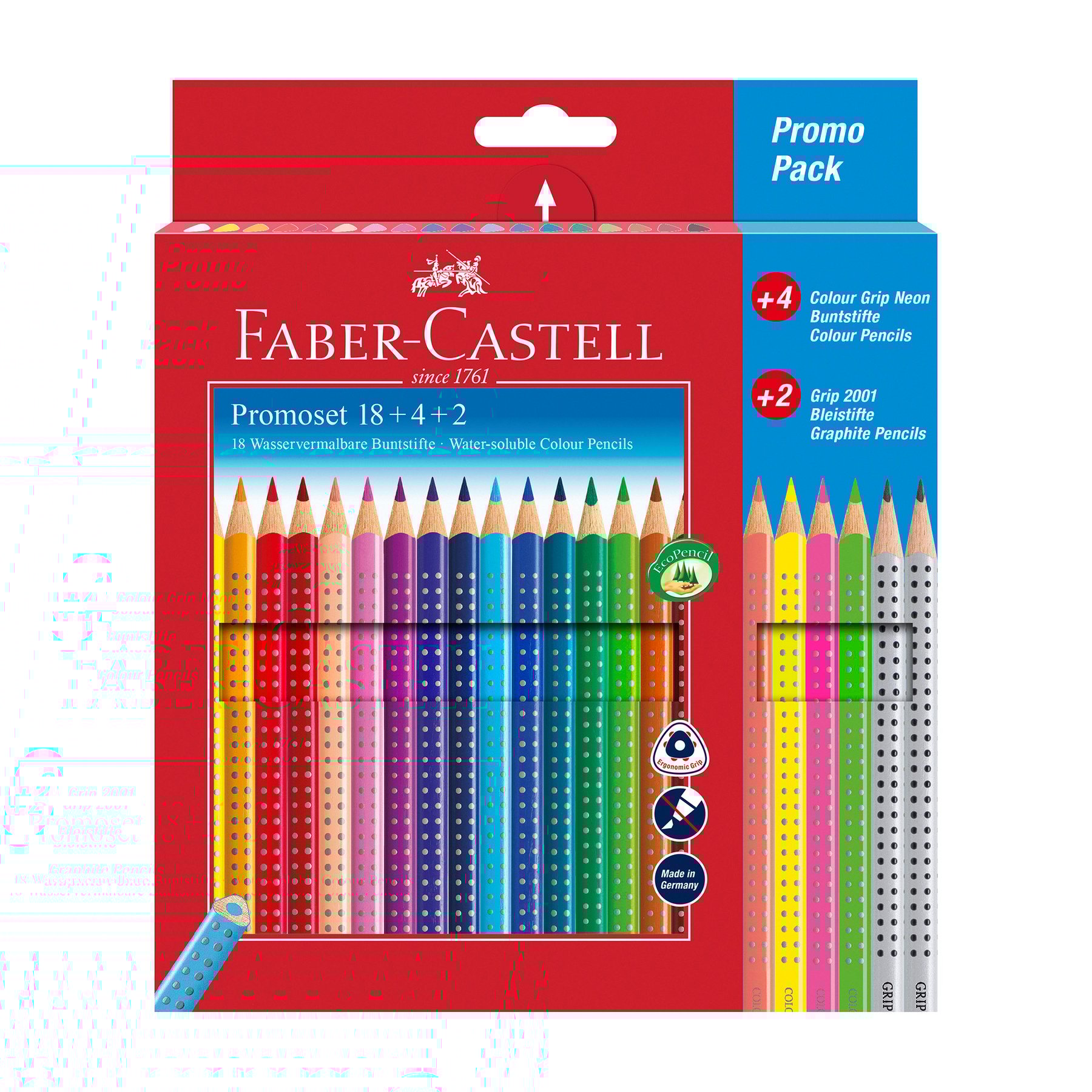 • Съдържание: 18 Grip цветни моливи в стандартни цветове, 4 Grip цветни молива в неон, 2 Grip графитни моливa.