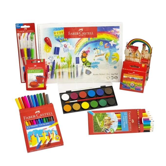 Комплектът за рисуване „Малък творец“ на Faber-Castell съдържа 7 рисувателни продукта, събрани в удобна чанта. Той е предназначен за деца в училищна и предучилищна възраст, като им предоставя всичко необходимо за часа по рисуване или художествените уроци извън училище. Комплектът представлява универсално решение за творчески занимания, което улеснява родителите в набавянето на всичко необходимо. Продуктите са напълно безвредни - пигментите им са на водна или хранителна основа, също така се изпират и почистват лесно от повърхности. "Малък творец" съдържа бестселъри от детската серия на Faber-Castell, а чантата има място за надписване.