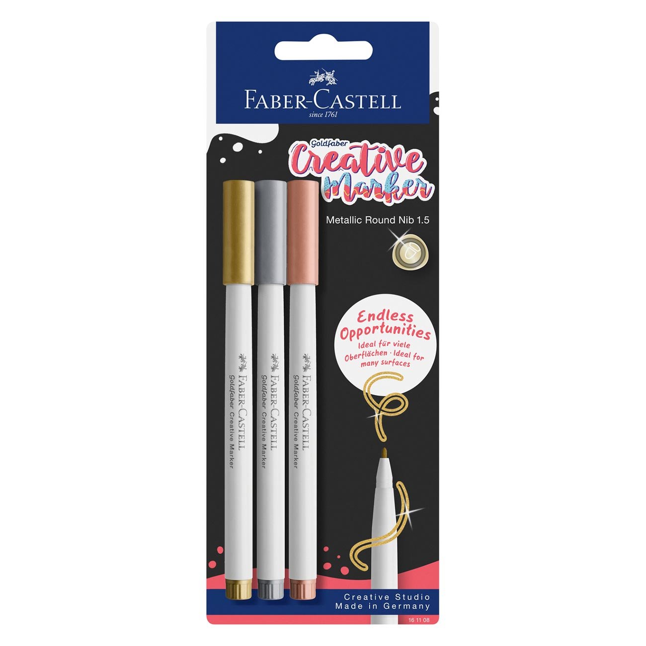 Faber-Castell Маркер Creative, объл, 1.5 mm, 3 металикови цвята