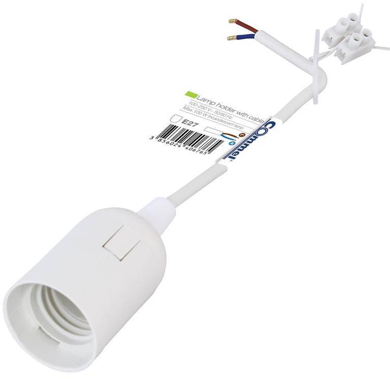 Фасунга E27 бяла с кабел 17см. H03VV-F 2x0,75мм2 и клема Commel