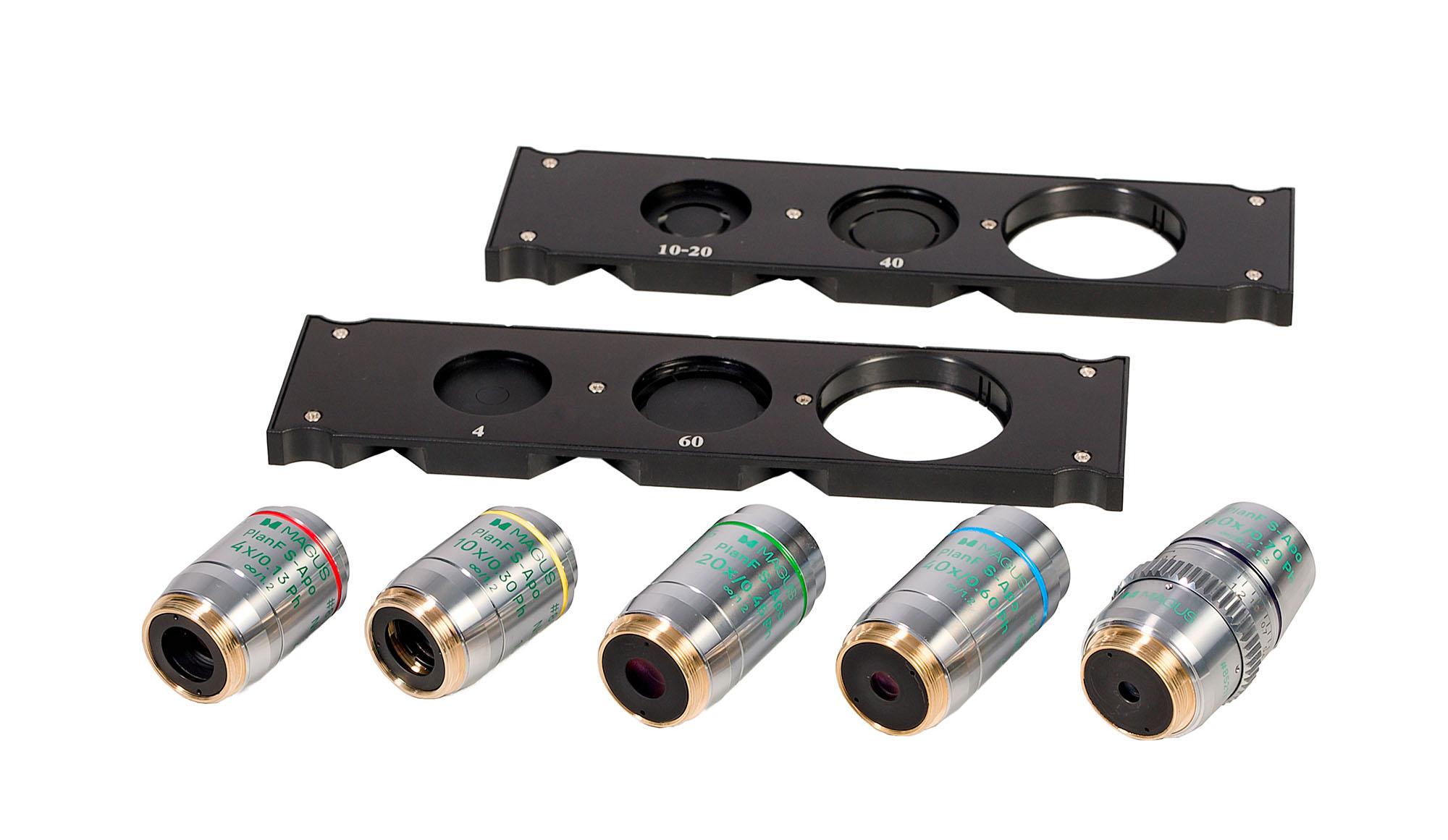Обективите с увеличение 4x, 10x, 20х и 40х са предназначени за работа с предметни стъкла с дебелина на дъното 1,2 mm.