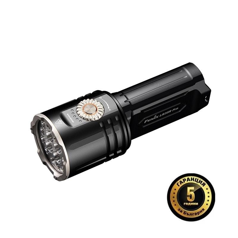 Fenix LR35R PRO е високопроизводителен фенер, проектиран за потребители, които изискват изключителна яркост в компактна форма. С впечатляващите 10 000 лумена и разстояние на светлинния лъч до 500 м, този мощен уред съчетава функциите на прожектор с плавно, безстепенно управление чрез въртящ се диск. Тя разполага и с режими за червена светлина и ултравиолетова светлина, предлагайки допълнителна функционалност за професионалисти, любители на приключенията на открито и ентусиасти на оборудването.