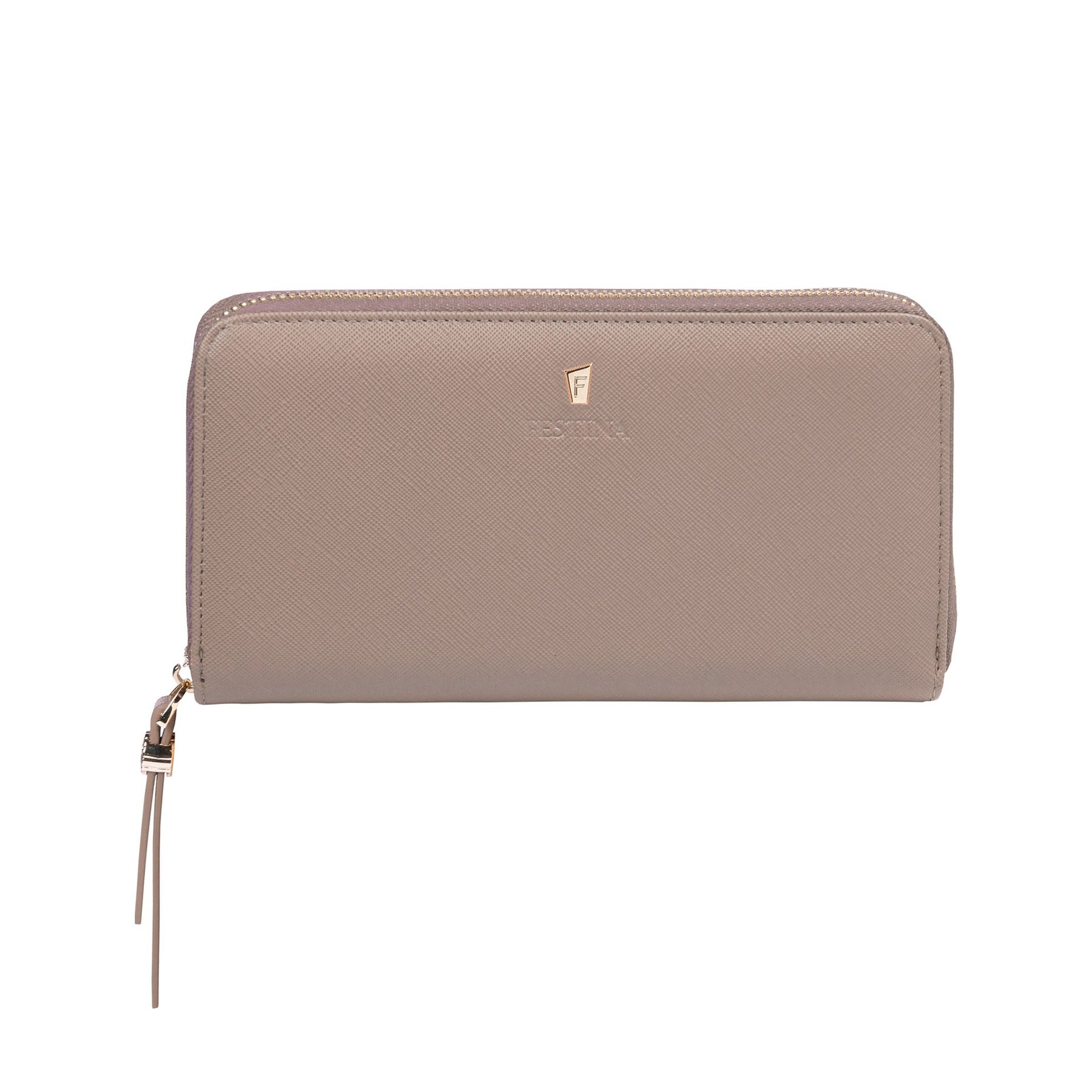 Вижте отблизо красотата на дамския портфейл "Mademoiselle", изработен от прекрасно текстурирана сафианова веган кожа. Всеки детайл е деликатно изработен, като механизмите на циповете, украсени с Festina Blazon, са вдъхновени от емблематичните за марката бутони за спиране на часовника. Този бежов модел има контрастен почти бял цвят на вътрешната част и се отличава с изключителна визия. Портфейлът е брандиран с фино релефен надпис на Festina, под златистата версия на луксозното "F".