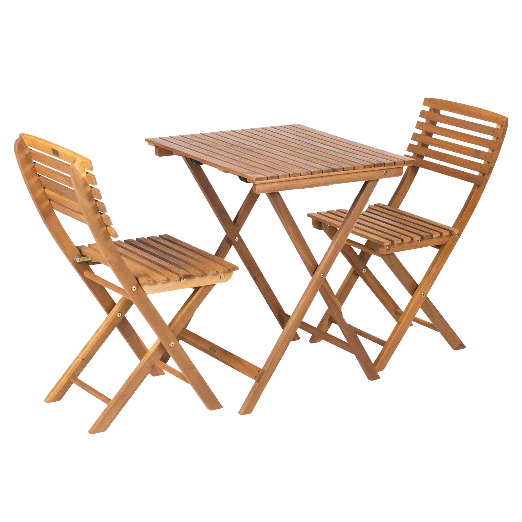 • Комплект от малка маса и два стола, подходящи за балкони и малки външни пространства.