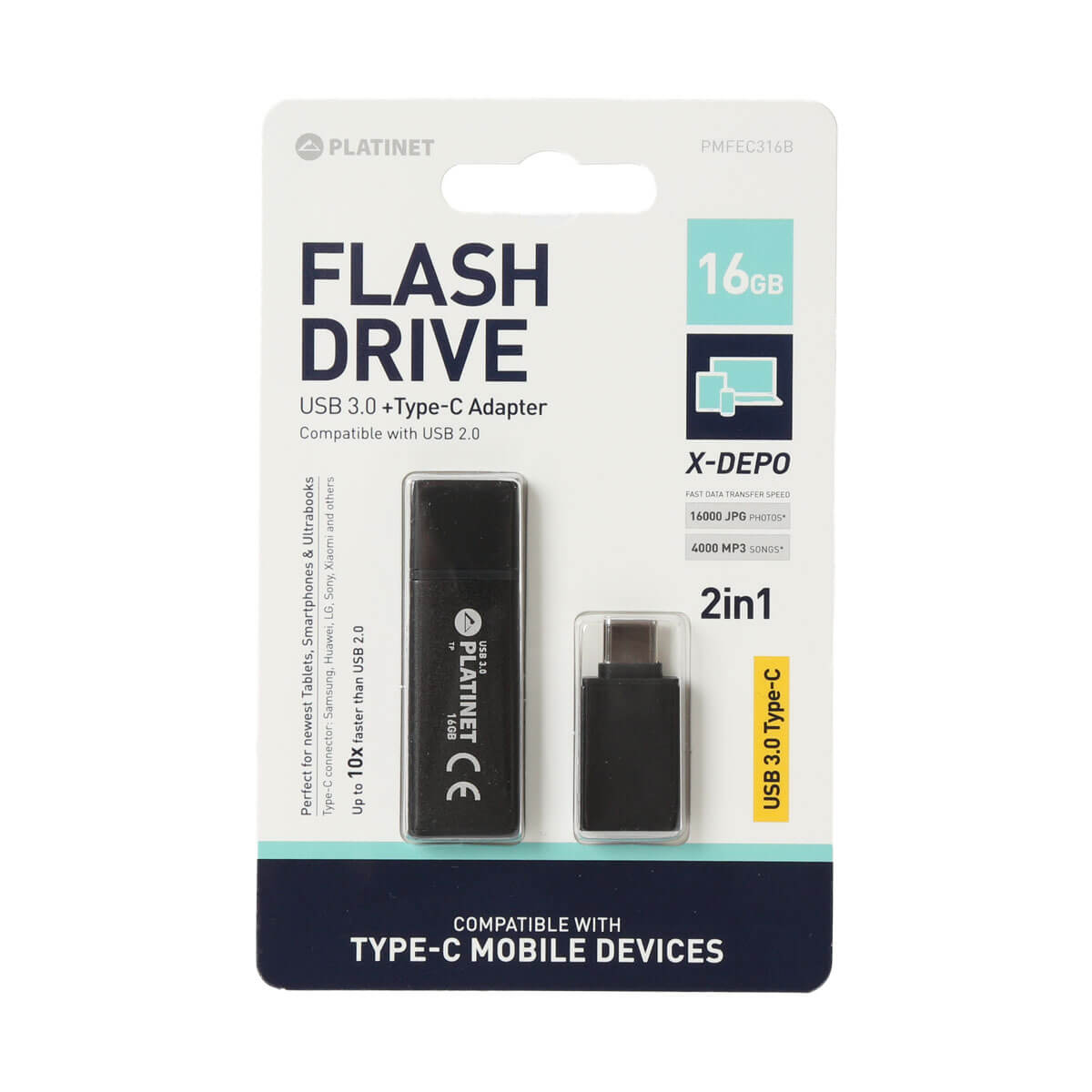 Включеният USB-C адаптер позволява бърз и лесен трансфер на вашите данни (снимки, филми, музика, документи) от най-новите смартфони и ултрабуци с USB-C конектори