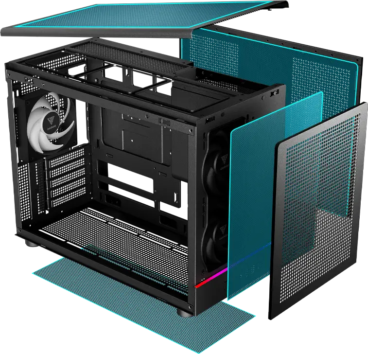 DUST RESISTANT Equipped with dust filters on the top and side, the case effectively protects against dust while maintaining ventilation. | ![]() |