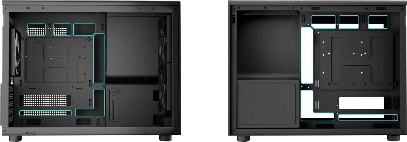 This case supports connector-hidden motherboard (BTF motherboard), enabling cables to plug in from the back for a cleaner front appearance and enhanced PC setups.