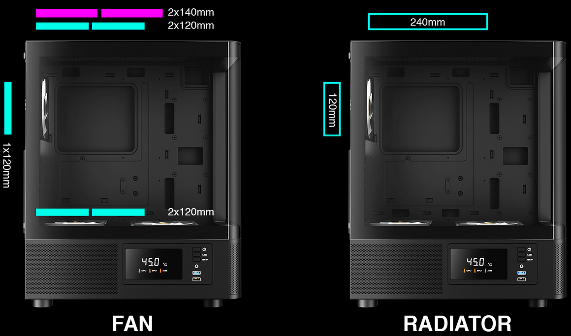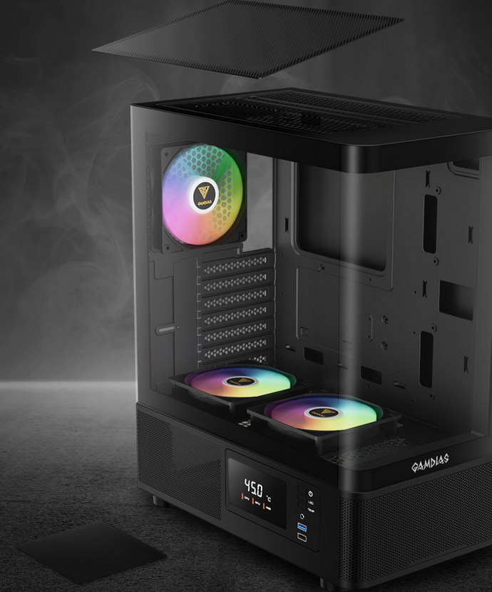 The ATLAS E2 CG accommodates up to 5 fans and provides flexible installation options for radiators at the top and the rear, ensuring optimal cooling performance.