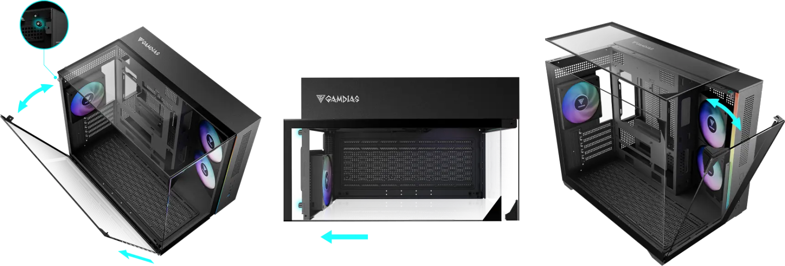 The case showcases your components through three seamless glass panels designed for easy access. The top and side panels can be swiftly removed via thumb screws, while the front panel is securely held by a single screw for convenient removal, enhancing both accessibility and the overall modding experience.