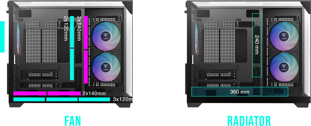 Side: 2 x 120mm PWM ARGB Fans