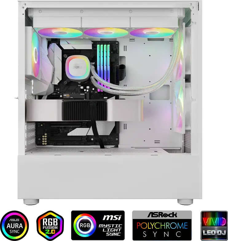 ARGB Luminance Cycle through 30 built-in lighting effects with an attached switch connector or synchronize the effects with any motherboard with a 5V 3-Pin addressable RGB header. | ![]() |