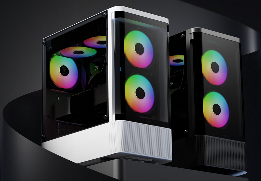 The TALOS E3 CG Series, in matte black and snow white, is a refined compact mid-tower case that combines modern elegance with powerful performance. It features a sleek curved front panel, along with 3 built-in 120mm ARGB fans, and tempered glasses on both the front and side panels, creating a seamless blend of style and functionality.