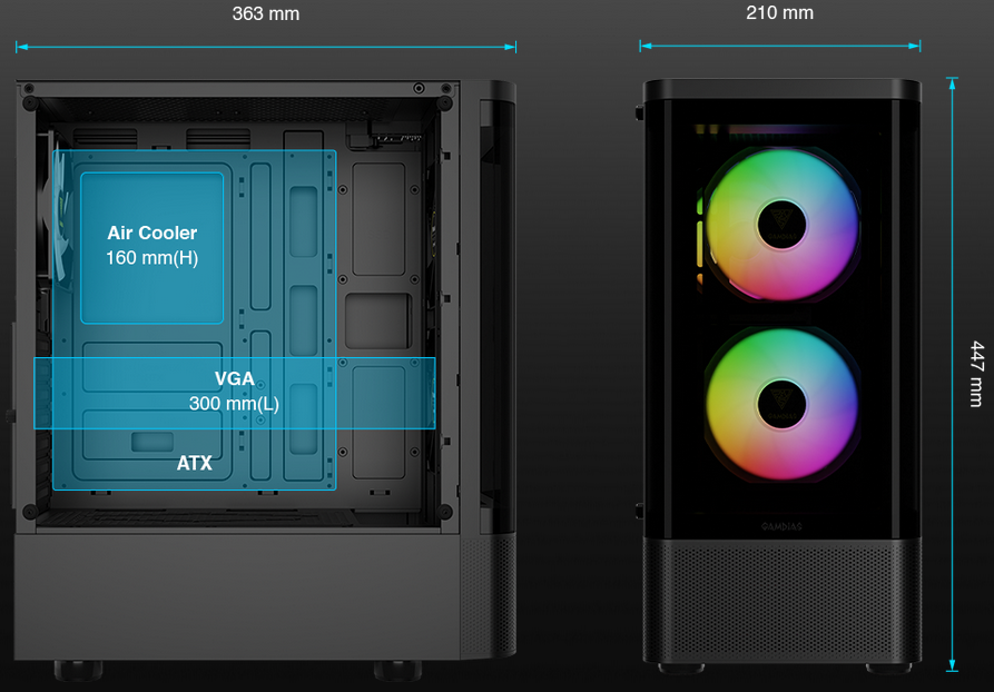Designed with a compact form factor, the case offers the option to house up to ATX motherboards and VGA cards up to 300mm.