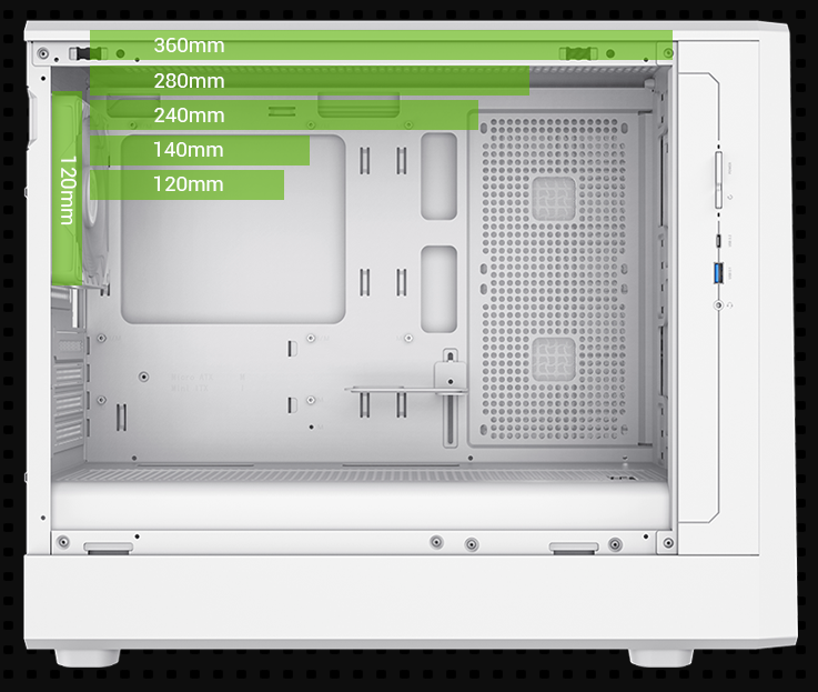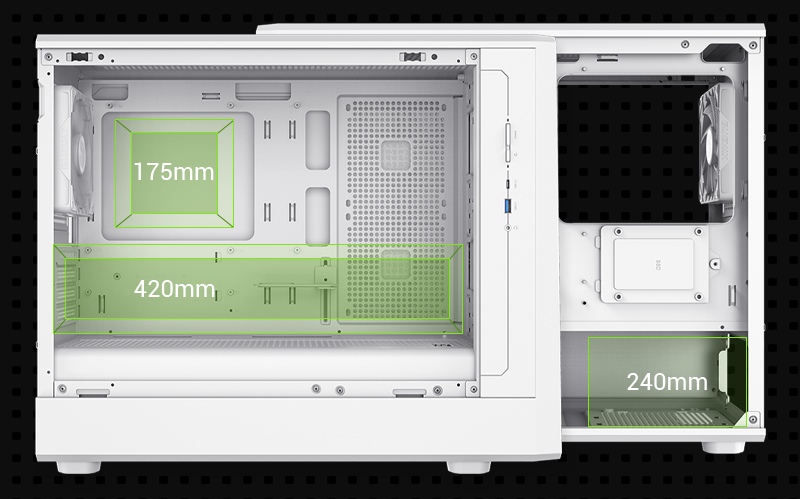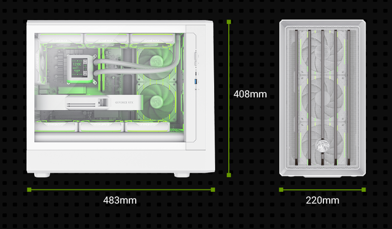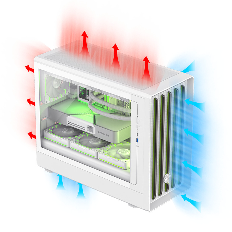 Superior thermal performance High-airflow mesh front and vertical airflow layout ensure efficient heat dissipation during demanding workloads or gaming sessions. | ![]() |