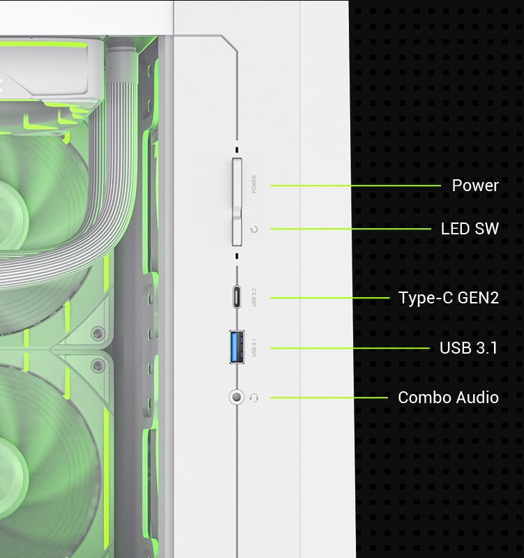 | Rear: | 1x120mm (Tornado-T12 ARGB) | |