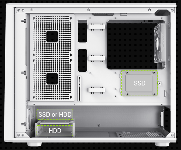 3.5"HDD x2 + 2.5"SSD x1 or 3.5"HDD x1 + 2.5"SSD x2