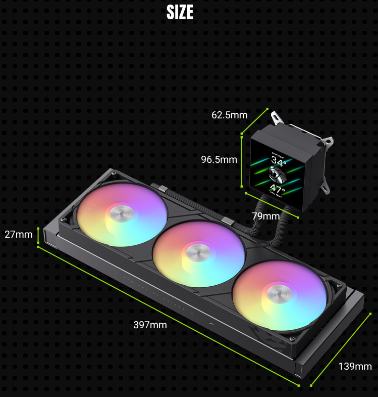 ![]() | Innovative side-mounted tube design Unique internal routing keeps tubing concealed behind the radiator, delivering a cleaner, more refined look inside the case. |
