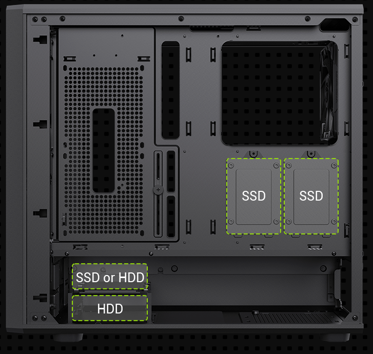 Superior thermal performance High-airflow mesh front and vertical airflow layout ensure efficient heat dissipation during demanding workloads or gaming sessions. | ![]() |