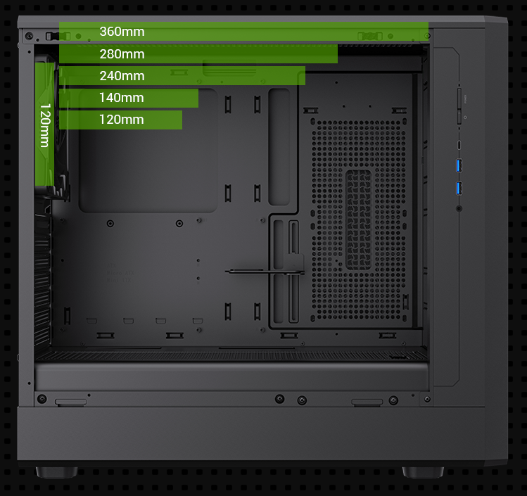 | PSU Cover: | *3x120mm (Fan optional) | |