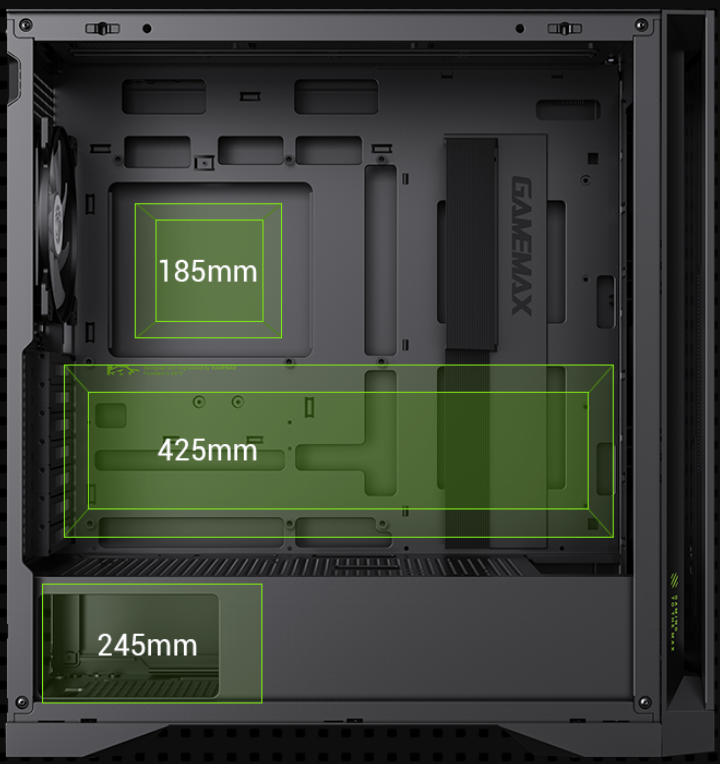 | VGA Support: | up to 425mm(inside the front cover w/o fan) | |
