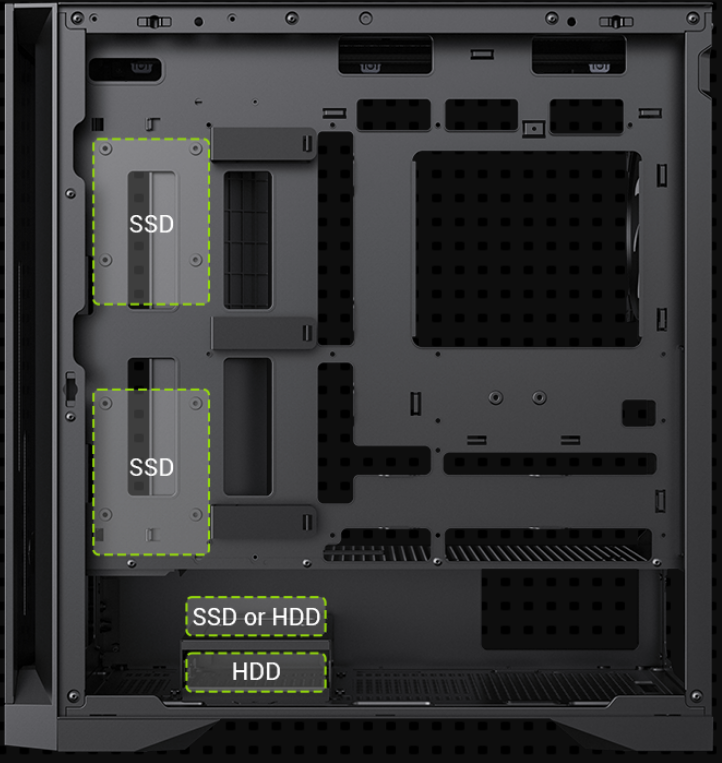 3.5"HDD x2 + 2.5"SSD x2 or 3.5"HDD x1 + 2.5"SSD x3 | ![]() |