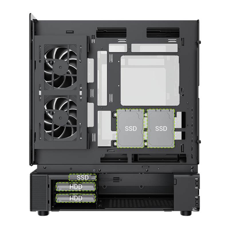 ![]() | BTF motherboard support Supports the latest BTF motherboards to hide cables behind the tray, achieving a clean, wire-free interior layout.
