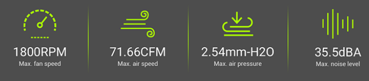 | Static Air Pressure | 2.54mm H2O(Max.) | 2.1mm H2O(Max.) |