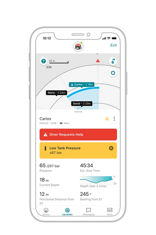 ![]() | Свързаните в мрежа водолази могат да виждат разстоянието и посоката си до буя |