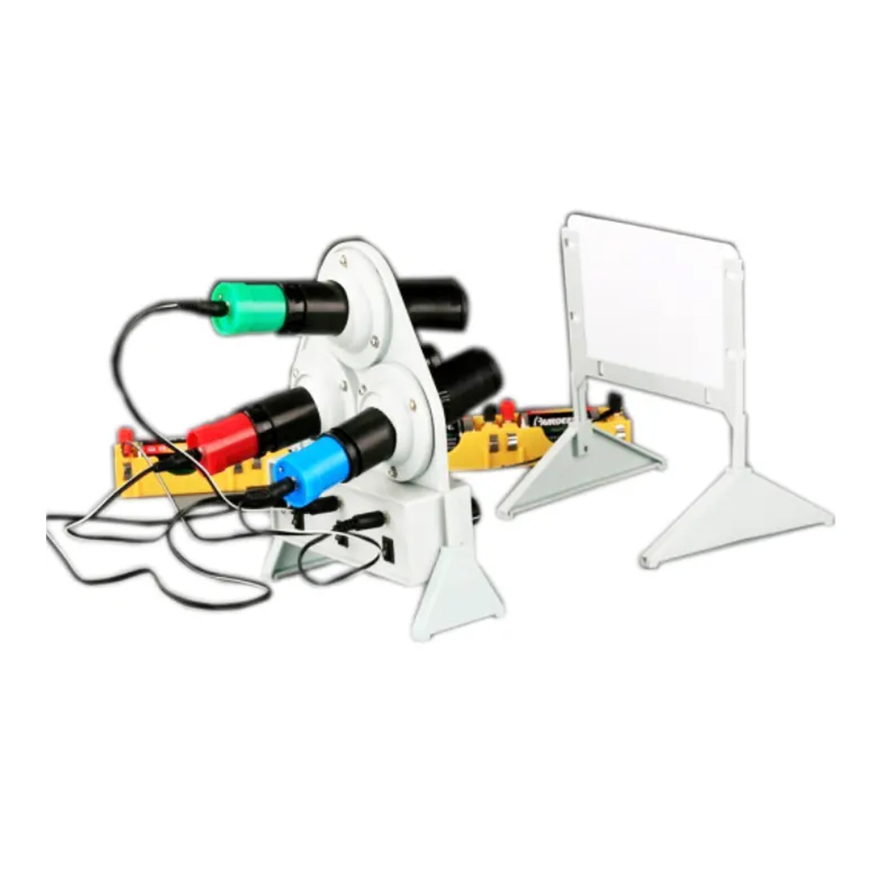 • Апаратът разполага със специални държачи и гнезда, за да осигури регулиране на ъгъла на падане за всеки цветен лъч върху белия екран.
