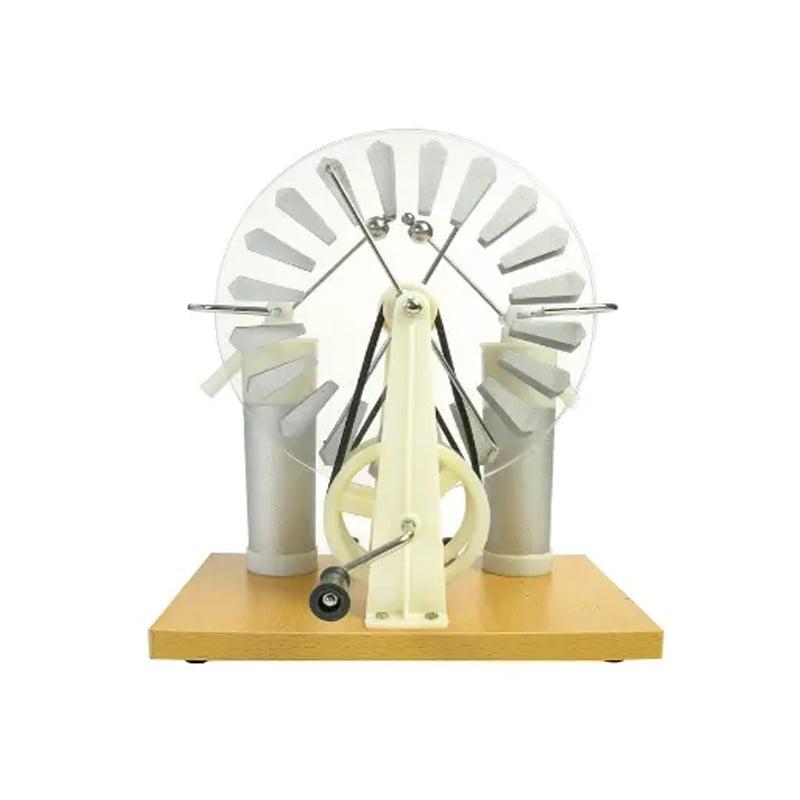Напълно сглобена машина на Уимшърст, с която се демонстрира електростатична индукция и производство на електрически заряди.