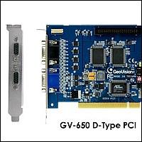 Охранителната платка GV-650 на GeoVision предлага запис и наблюдение в реално време на 8, 12, или 16 камери и 2 канала звук.