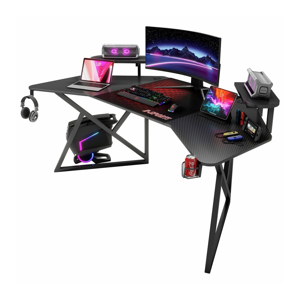 Гейминг бюро P203, 1600 x 740 x 1000 mm, RGB подсветка, поставка за слушалки и чаша, черно206.80 €
