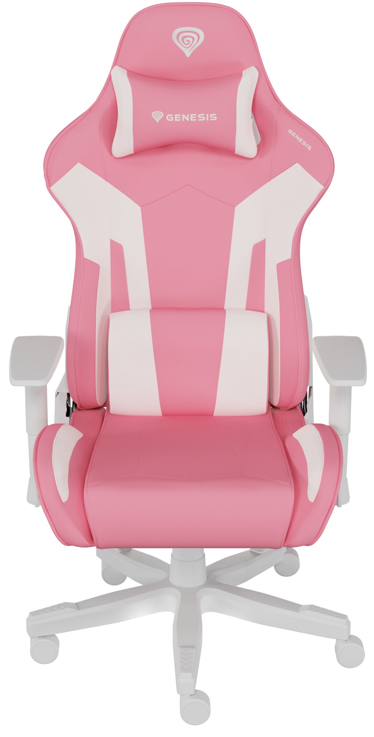 Геймърски стол Genesis Nitro 710 еко кожа, PP база, регулируеми подлакътници, бял/розов