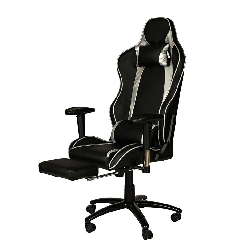 Геймърски стол PLAY RT, еко кожа, PP база, подложка за крака, регулируеми подлакътници, черен/сив
