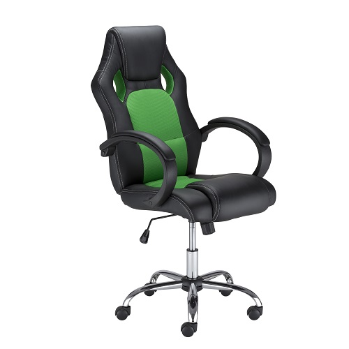 Геймърски стол Race Steel, еко кожа и меш, база хром, фикс. подлакътници, черен/зелен