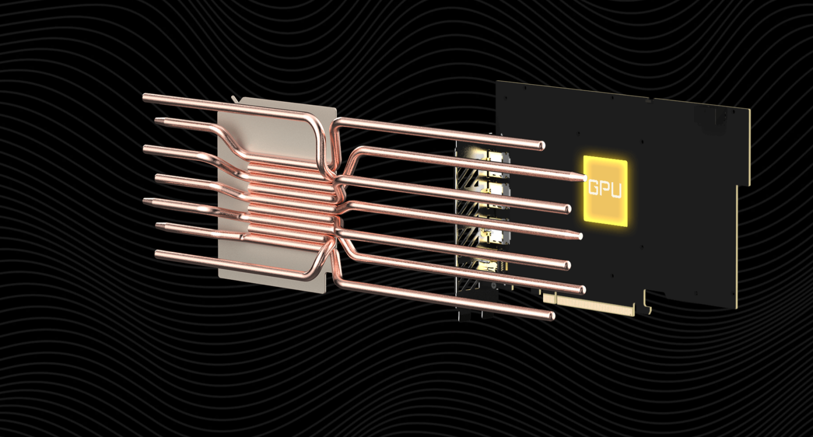 The large vapor chamber directly contacts the GPU, coupled with the composite heat pipes, which quickly transfers the heat of the GPU and VRAM to the heatsink.