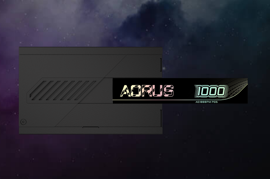 AORUS magnetic plate design The unique AORUS magnetic plate can be attached to different sides of the power supply based on the user’s preference, presenting the best visual effect from any angle. Additionally, while the plate being moved on the case, its neon color printing with metallic sheen creates solid and hollow special effects for the AORUS logo. | ![]() |